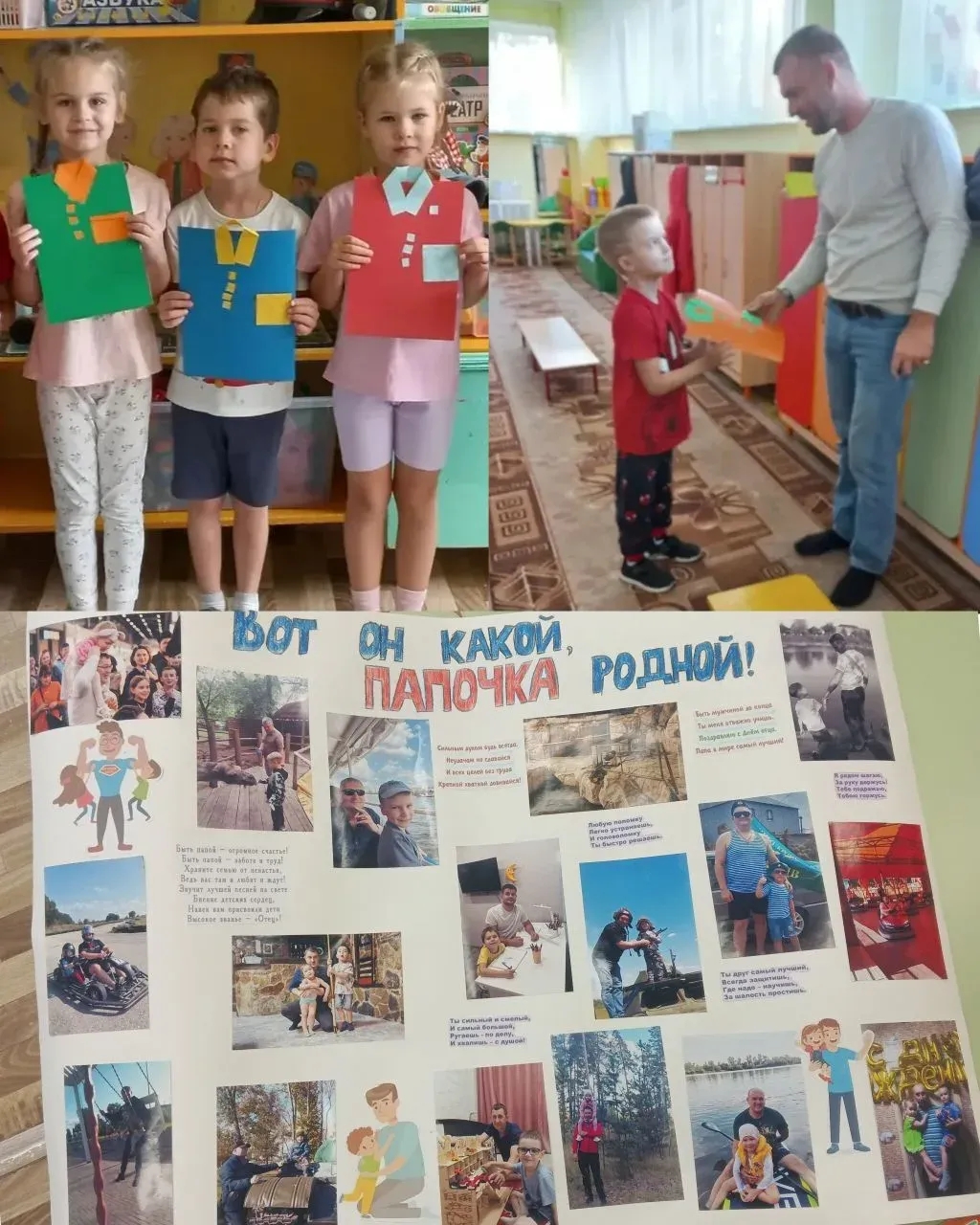 В группе «Теремок» (педагоги Серёгина Н.В., Бударина Т.Ю.) прошла очень насыщенная неделя, посвящённая Дню отца. Ребята изготовили поздравительный плакат «Вот он какой, папочка родной!» Накануне праздника дети участвовали в эстафетах и, конечно же, подготовили праздничные открытки для папы. Быть папой — очень сложная и ответственная работа! Желаем вам справляться с ней легко, чтобы всё доставляло радость! Беречь свою семью от напастей и ненастья, быть достойным примером, надёжным плечом в нужную минуту и опорой для всех членов семьи! Пусть будут крепким здоровье, силы и мудрость!