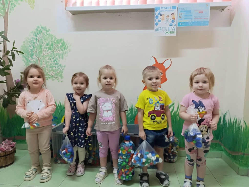 Ребята группы «Сказочная полянка» продолжают свое участие в экологической акции «Водорослям — крышка!». Собранные крышки перерабатываются, а на вырученные средства закупают мальков растительноядных рыб, таких как толстолобик и белый амур. Эти рыбы затем выпускаются в Волгу, чтобы они питались водорослями и помогали очищать реку.