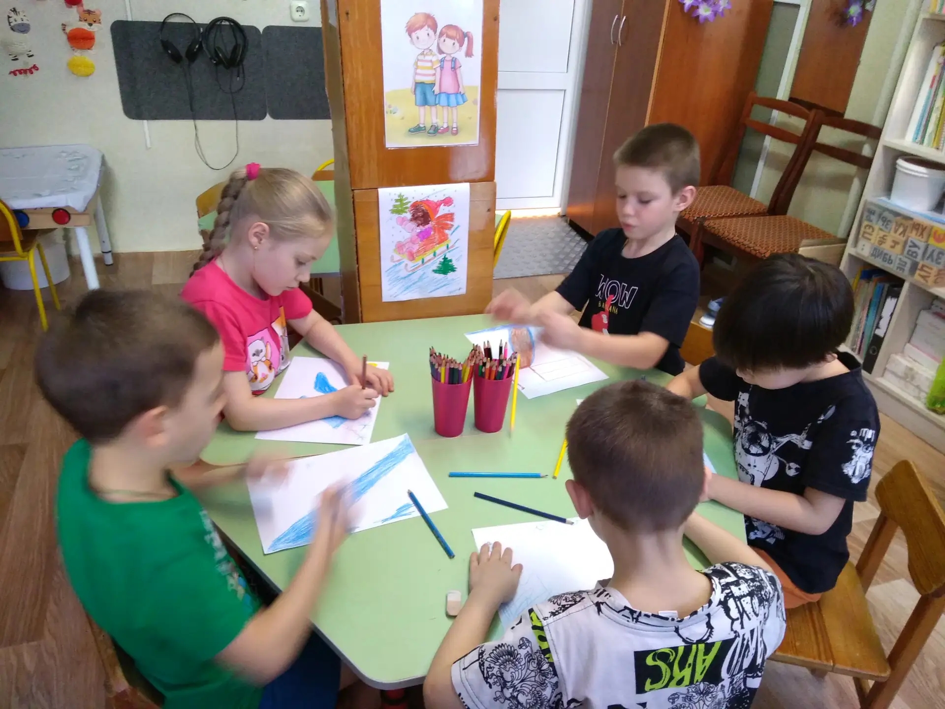 Зима в разгаре! Дети катаются на снежных горках. Это очень весёлая забава! Но, если не соблюдать правила, то катание с гор может закончиться очень печально. Сегодня мы с детьми подготовительной группы №2 говорили о том, как важно и в игре, и в серьёзных делах не быть грубым, не толкаться, уметь договариваться, соблюдать очередь, уступать друг другу. Ребята учились договариваться при помощи слов — общепринятых речевых формул. Не забывали употреблять в речи «волшебные слова» (будьте добры, пожалуйста, я очень прошу……..) А ещё они узнали новый способ: договариваться молча, без слов, с помощью карточек, мимики и жестов. В конце занятия дети нарисовали, как они катаются на своих любимых снежных горках. Во время рисования ребята вспомнили весёлые зимние песенки и дружно, хором спели их. Такие занятия помогают детям лучше понимать друг друга, сплачивают группу, укрепляют дружбу.