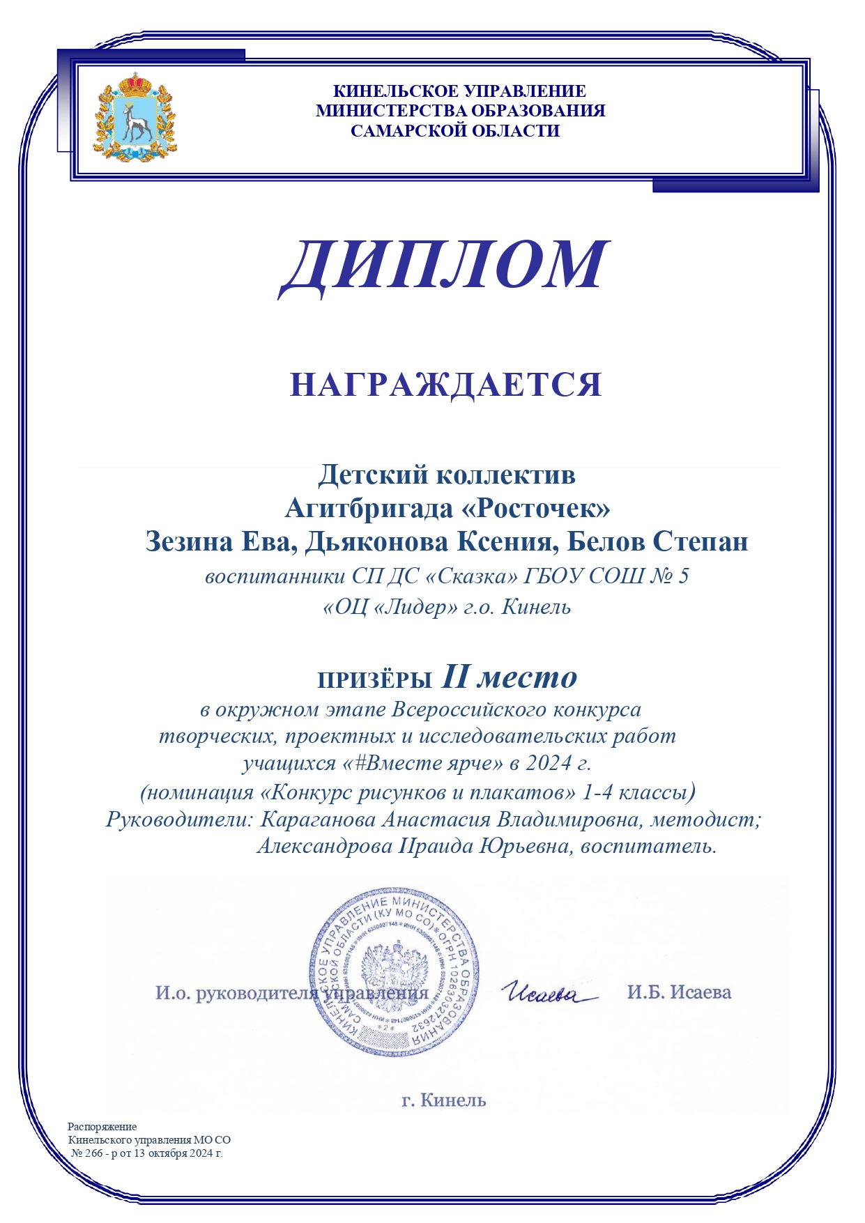 — Наставник студентов ГБПОУ «КГТ» обучающихся по специальности «Дошкольное образование» в дуальной форме на 2024 -2025 уч.г. Приказ №910 -ОД от 05.11.2024г.